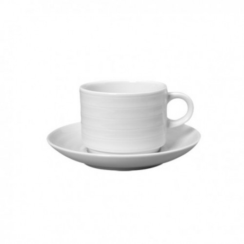 Pires e Chávena cappuccino Branco em porcelana, com uma aparência discreta e linhas minimalistas. Para servir com estilo e um reflexo do design português. A sua versatilidade permite-lhe adequar-se a diferentes soluções quer de restauração quer para uso doméstico. Pode ir ao microondas e à máquina de lavar louça.