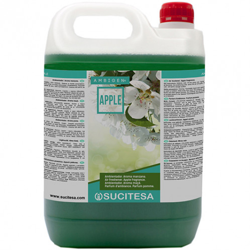 Liquido Transparente Verde de aroma a maçã, melhora o ambiente e a qualidade do ar. Perfume agradável e duradouro, neutraliza odores desagradáveis sem os mascarar. Incorpora a Tecnologia DEODOR. Criando uma atmosfera confortável que proporciona bem-estar. Aplicado em estabelecimentos de recintos com uma grande afluência de públicos. Unidade de Venda: Emb. de 5L (apresenta-se também em Caixa com 4 Emb. de 5L).