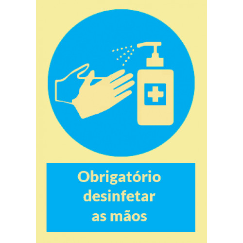 Sinal Obrigatorio desinfetar mãos PVC Opaco.
