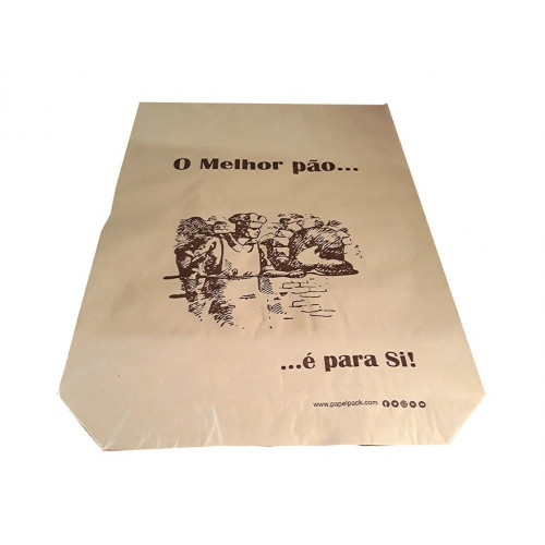Saco em papel para uso alimentar, permite o transporte e acondicionamento de pão. Material: Papel Kraft Castanho Dimensão (LxFxC): 44x10x85Cm Unidade de Venda: Emb. c/ 100 Unid.
