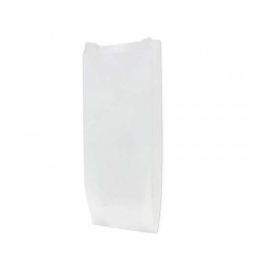 Saquetas em papel usadas no acondicionamento e transporte dos mais diversos tipos de produtos alimentares e não alimentares em padarias e pastelarias. Podem ser usadas também em Farmácias, Drogarias, retrosarias, etc. Dispomos deste modelo de produto personalizado (impressão ate 3 ou 4 cores), consulte o apoio comercial para obter mais detalhes e informações sobre valores e quantidades mínimas. Material: Papel Kraft Branco, (L+F)xC): (14+6)x31Cm, Peso Bruto: 4.85Kg Unidade de Venda: Emb. c/ 1000 un.